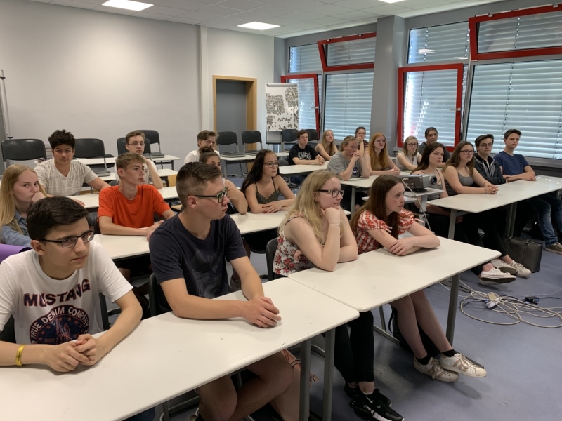 Die Klasse 9d warf am 19. Juni mit Hilfe des Westdeutschen Rundfunks (WDR) einen Blick in den Geschichtsunterricht der Zukunft: Ausgerüstet mit einem Klassensatz iPads stellten unsere Gäste den Neuntklässlern die App „WDR AR 1933-1945“ vor.