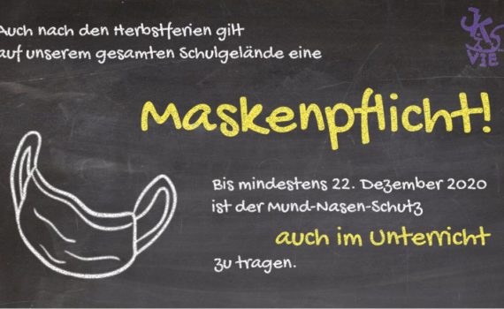 Soeben wurde das aktuelle Monatsblatt mit wichtigen Informationen zum Schulbeginn nach den Herbstferien versendet. Wie immer, finden Sie die Basics auch in unserem Archiv So gilt unter anderem ab Montag auch wieder die Pflicht zum Tragen einer Mund-Nase-Bedeckung im Unterricht!