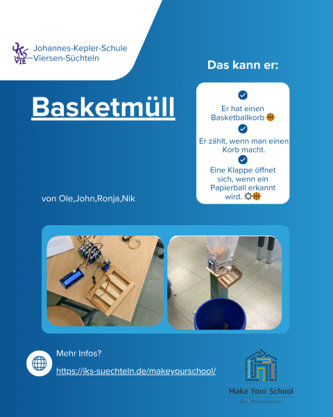 • Basketmüll: Ein Basketballkorb über dem Klassenmülleimer, der erfolgreiche Würfe mitzählt und so für mehr Motivation beim Aufräumen sorgt.