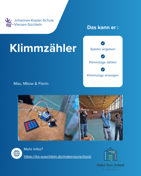 • Klimmzähler: Ein System für die Sporthalle, das Klimmzüge zählt und eine Bestenliste erstellt.
