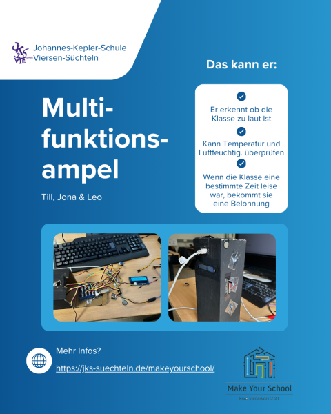 • Multifunktionsampel: Eine Ampel zur Lautstärkemessung im Klassenraum, die hilft, eine angenehme Arbeitsatmosphäre zu schaffen.