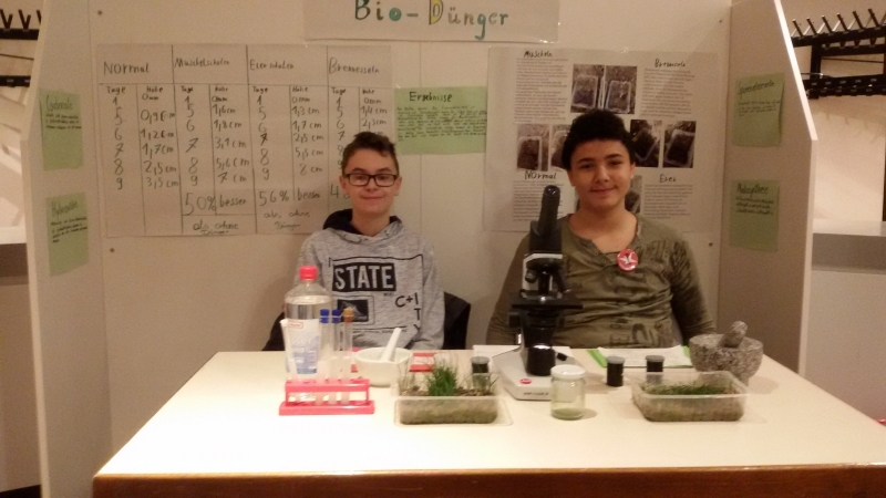 Unterstützt wurden die Schülerinnen und Schüler in der AG am Donnerstag von Frau Nickle und Frau Fastabend mit Projekten der Biologie und Physik. Herr Diekmann betreute die zwei Teams der Jahrgangsstufe 5, die für unsere Schule im Fachbereich Mathematik/Informatik geforscht haben. Entstanden ist ein Mathe-Wecker, dessen Programmcode nach Planung der beiden Jungs demnächst kostenfrei im Internet erhältlich sein wird, und eine Blumenpflegestation, die demnächst im Klassenraum der Klasse 5a ihren Dienst verrichten wird.