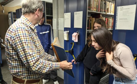 Am 21. November 2023 besuchte die 9a im Rahmen des Geschichtsunterrichts zur Weimarer Republik das im letzten Sommer neueröffnete Kreisarchiv in Dülken. Zuerst gab es durch Herrn Ewers und Frau Meyer-Süsterhenn eine kurze Einführung zur Bedeutung und Arbeit des Archivs und dann eine kleine Führung ins Magazin, also das Lager […]