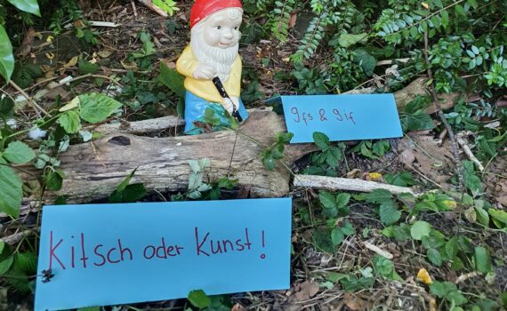 Unter dem Motto„Kitsch oder Kunst“ haben die letztjährigen Kurse 9fs und 9if Zwerge aus Pappmaschee angefertigt. Diese schmücken seit dem gestrigen Tag unseren tollen 10er-Garten.