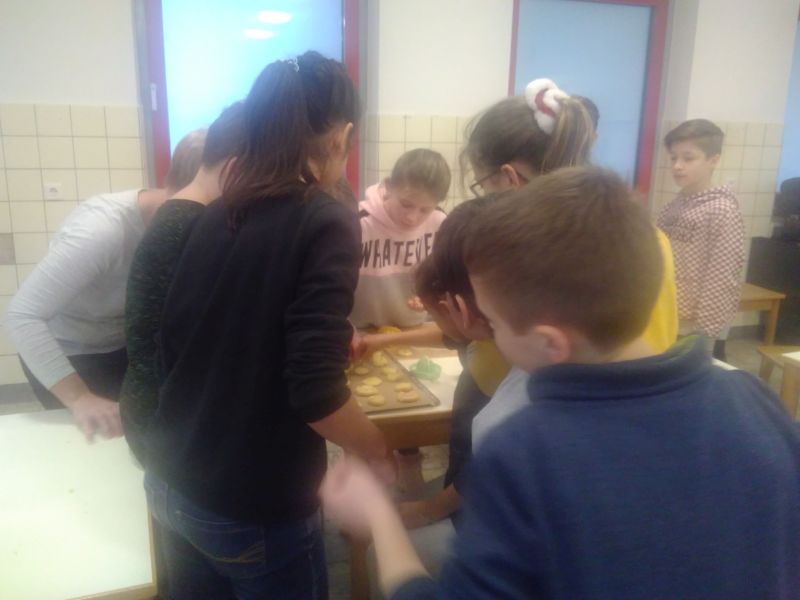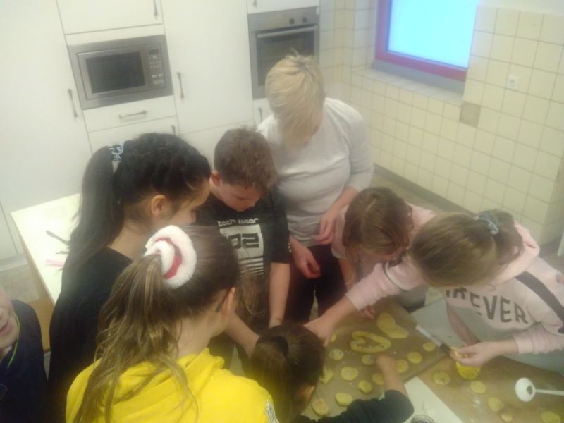 In der ersten Dezemberwoche traf sich die Klasse 5a nach der Schule um Teig zu kneten, Zuckerperlen zu naschen und Plätzchen zu backen.